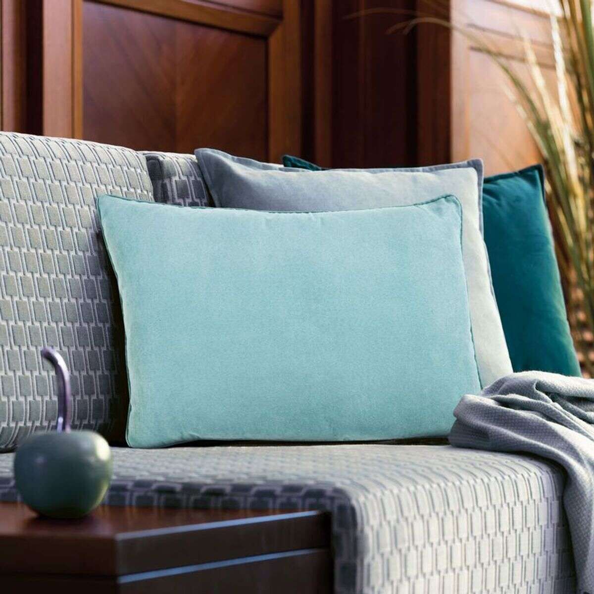 Coussin en suédine bleu clair 60x40