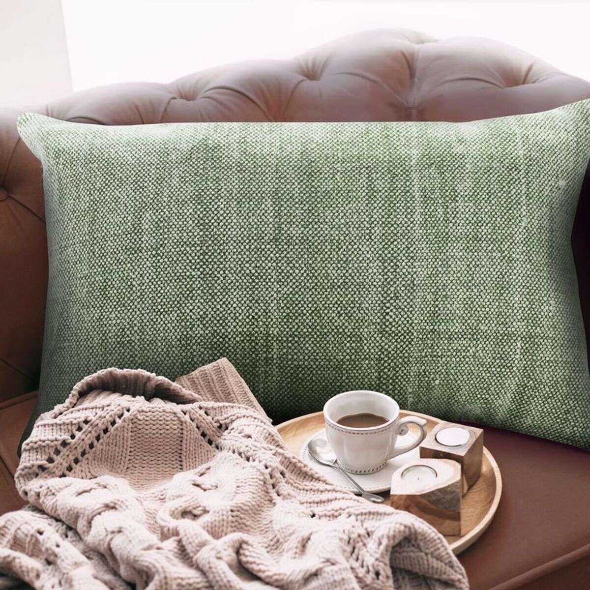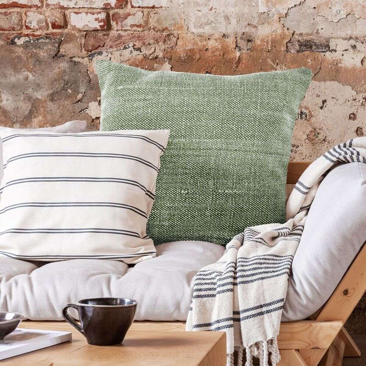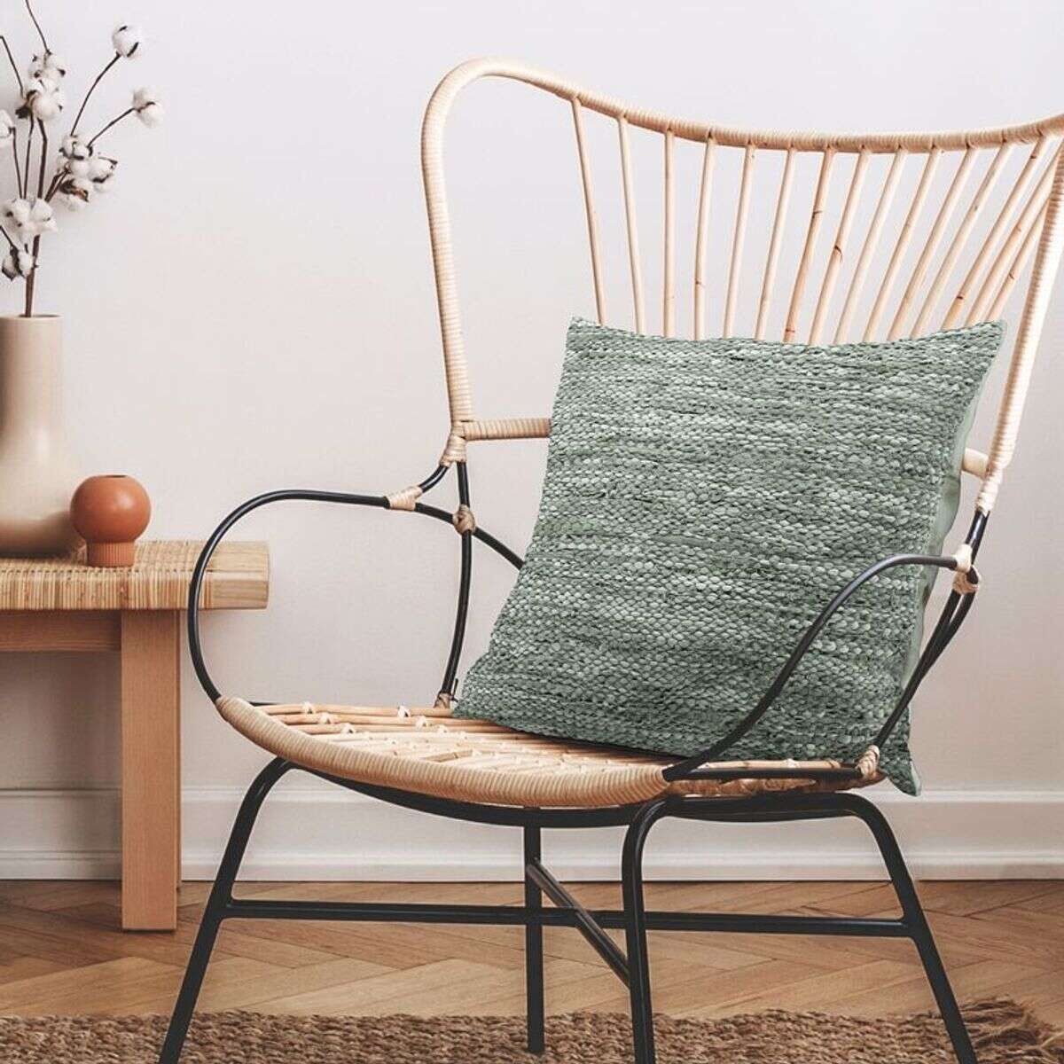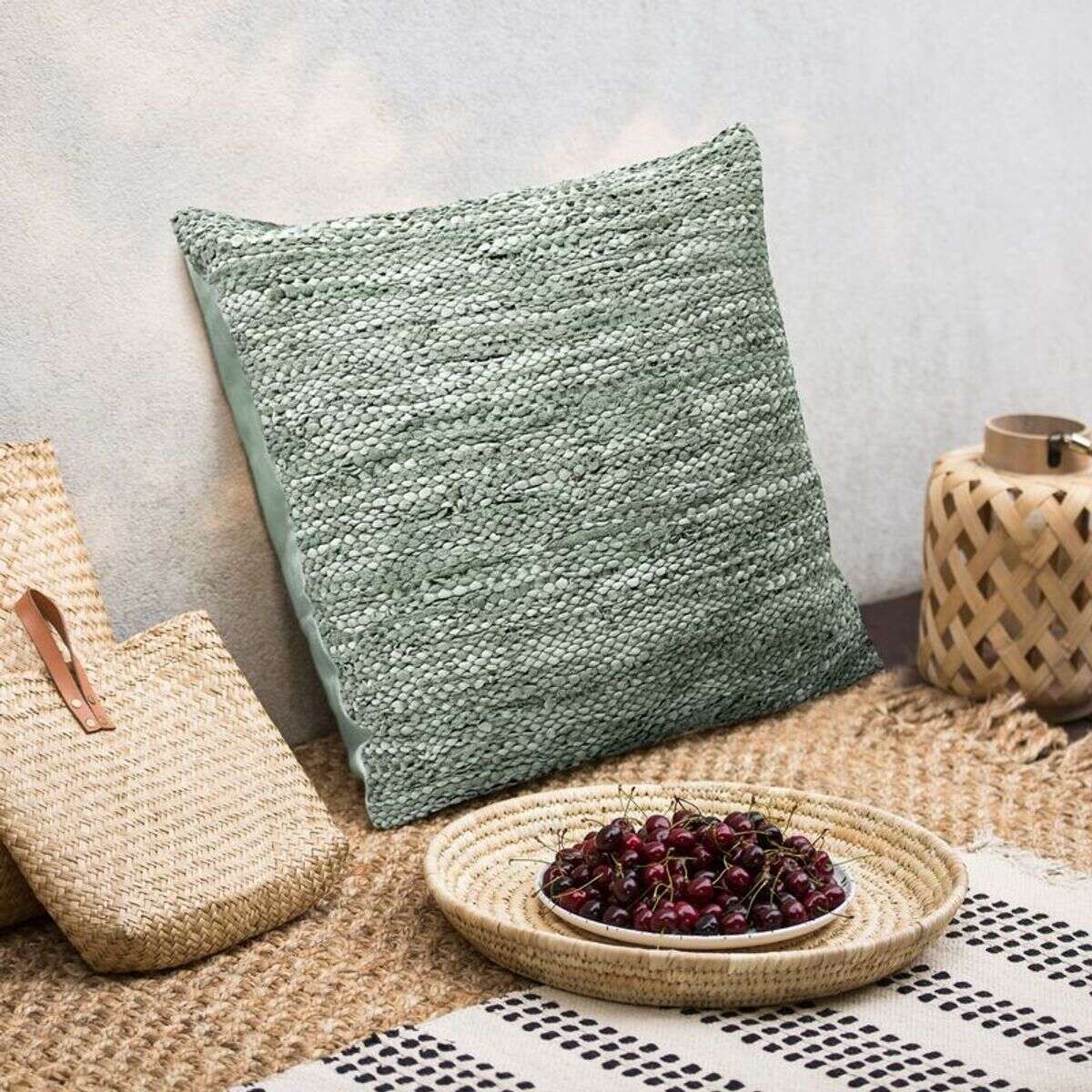 4. SKIN Coussin en cuir tressé vert clair 70x70