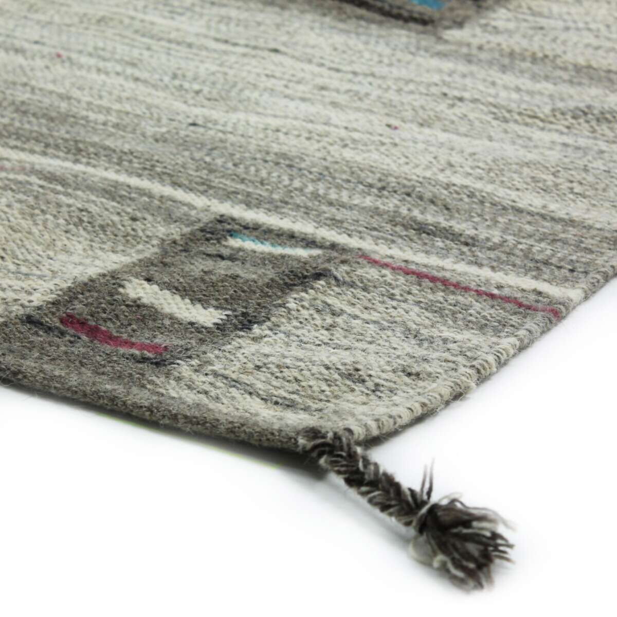 Tapis en laine à tresses pompons esprit tribal gris 140x200