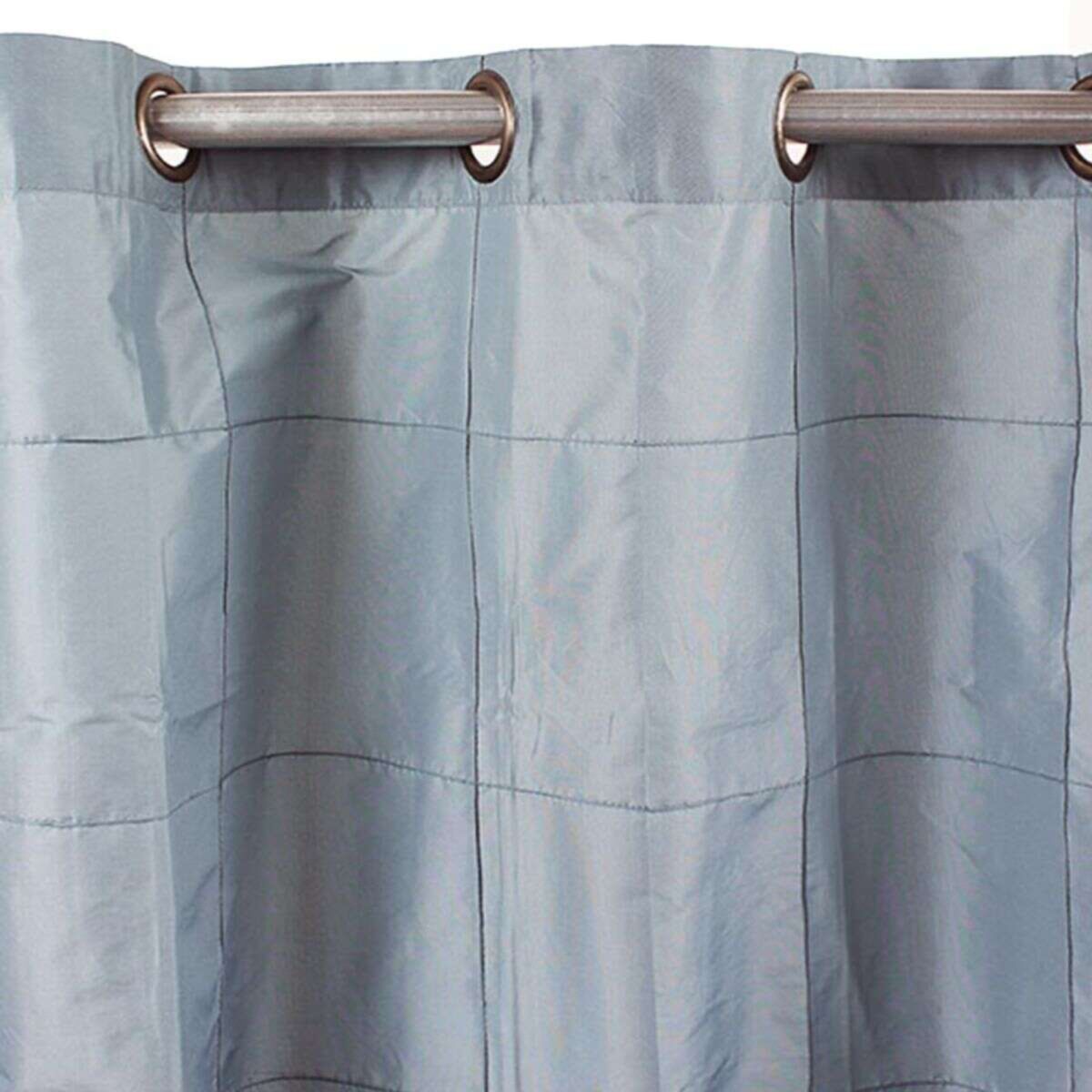 Un rideau très chic de couleur ciel, en taffetas polyester, surpiqué, qui donnera à votre intérieur beaucoup de raffinement, et de lumière.